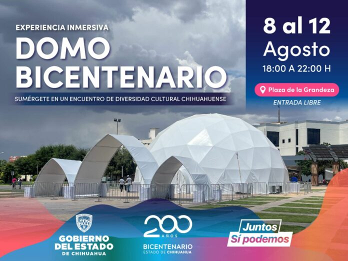 Chihuahua, Chih .- En el marco de la conmemoración por el Bicentenario de Chihuahua como Estado libre y soberano, la Secretaría de Cultura invita a la comunidad a conocer las 8 Regiones Culturales de la entidad, que serán exhibidas en el Domo Inmersivo instalado en la Plaza de la Grandeza.