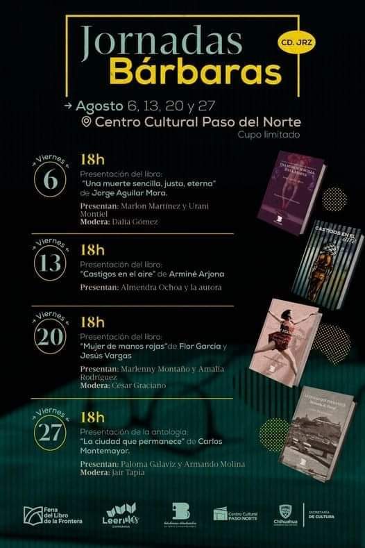 La obra será comentada por Paloma Galaviz y Armando Molina, con la moderación de Jair Tapia, y es la última de las presentaciones de las “Jornadas Bárbaras” de publicaciones de destacados autores chihuahuenses.