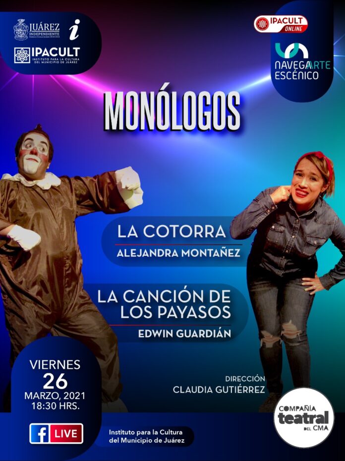 Ciudad Juárez, Chih.- El Instituto Para la Cultura del Municipio de Juárez (IPACULT) continúa con sus actividades virtuales y para esta tarde invita a la ciudadanía a disfrutar de una nueva puesta en escena con la Compañía de Teatro del Centro Municipal de las Artes (CMA).