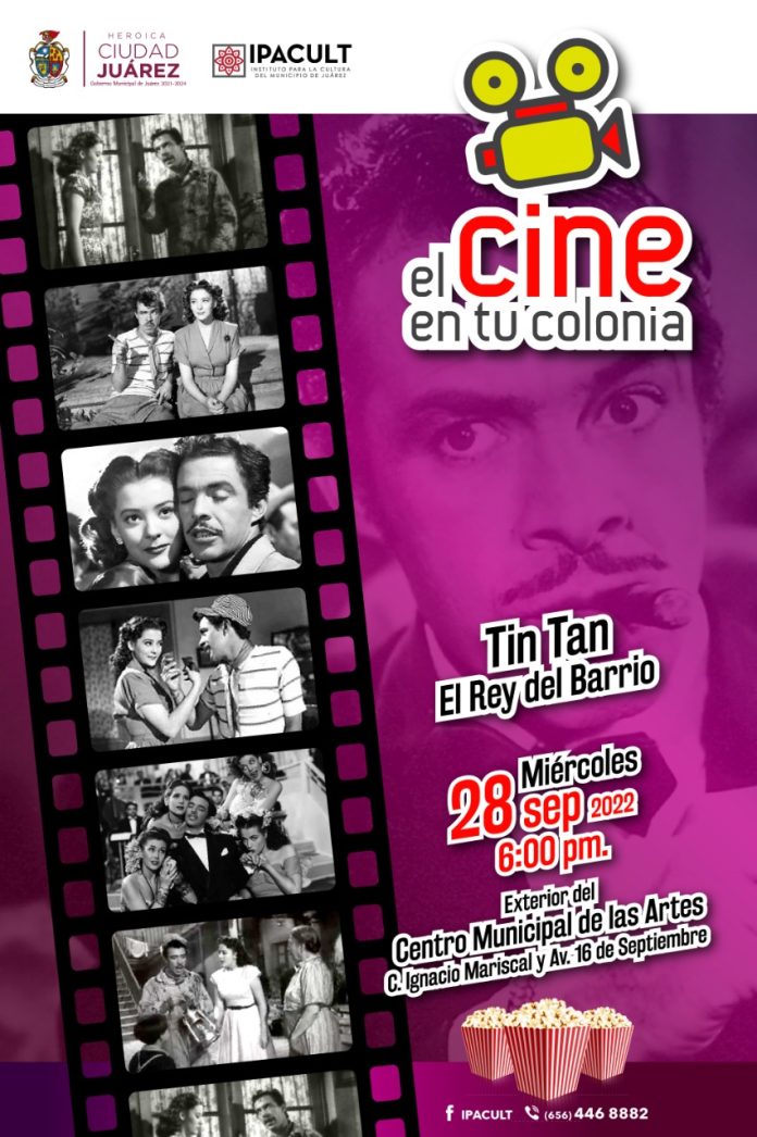 Ciudad Juárez, Chih .- A las 6:00 de la tarde frente al Centro Municipal de las Artes (CMA), o antigua presidencia municipal, se proyectará la película “El Rey del Barrio”, uno de los trabajos más populares del famoso Germán Valdez “Tin Tan” en el ciclo de la época de oro del cine mexicano.