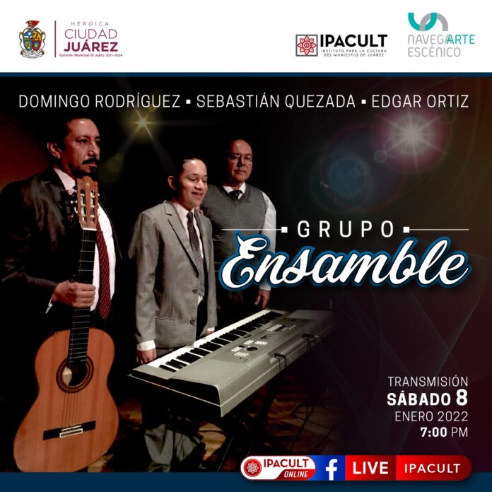 Ciudad Juárez , Chih .- El Gobierno Municipal 2021-2024, a través del Instituto Para la Cultura del Municipio de Juárez (IPACULT), invita a la comunidad a disfrutar esta noche de sábado de una extraordinaria velada musical de la mano del grupo “Ensamble”, en una más de las presentaciones artísticas vía internet que ofrece a la comunidad a través de su programa “NavegArte Escénico”.