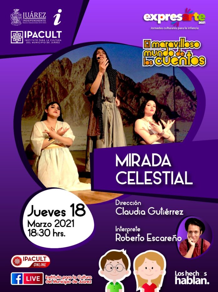 Ciudad Juárez, Chih.- Con la presentación de la historia de “Mirada celestial”, la tarde de este jueves continúan las actividades que el Instituto Para la Cultura del Municipio de Juárez (IPACULT) ofrece gratuitamente a la comunidad a través de transmisiones vía internet, en esta ocasión en el marco de su programa “El Maravilloso Mundo de los Cuentos”.