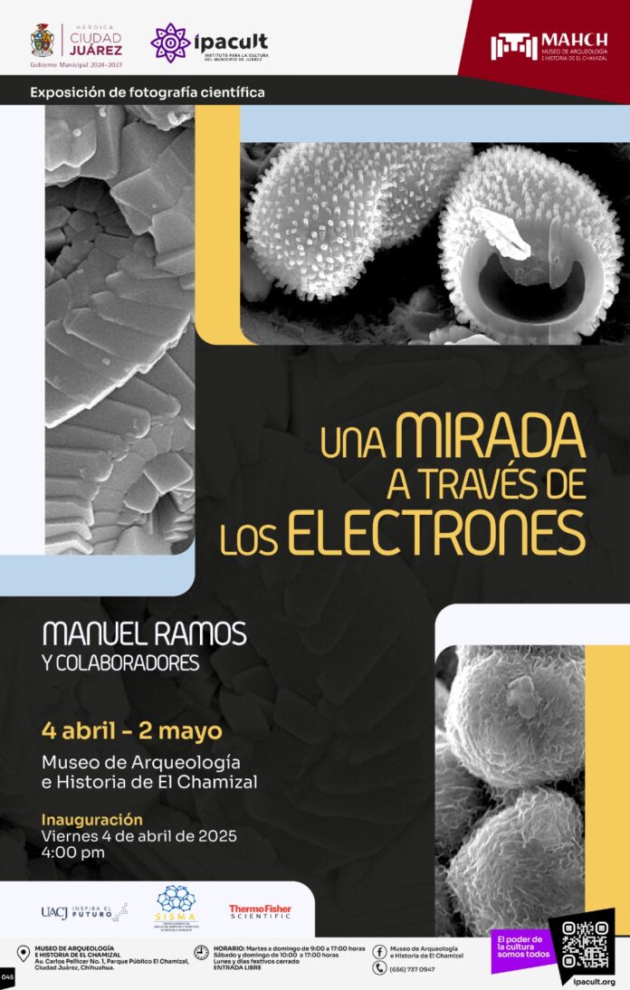 El Instituto para la Cultura del Municipio de Juárez (IPACULT) invita a la ciudadanía a la inauguración de la exposición “Una mirada a través de los electrones”, del doctor Manuel Ramos, la cual se llevará a cabo el próximo viernes 4 de abril a las 04 de la tarde en el Museo de Arqueología e Historia de El Chamizal (MAHCH).