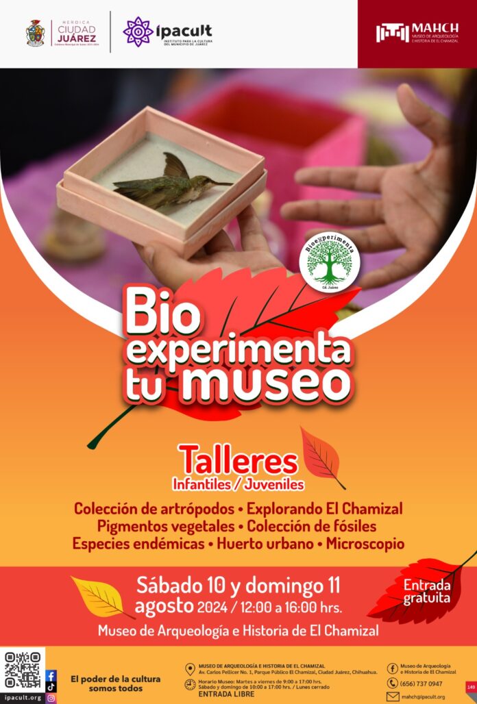 El Instituto para la Cultura del Municipio de Juárez (IPACULT) extiende una invitación a la ciudadanía para asistir al evento Bioexperimenta tu Museo, que se llevará a cabo este fin de semana en el Museo de Arqueología e Historia de El Chamizal (MAHCH). El evento busca fusionar la educación científica y ambiental con la cultura e identidad de Ciudad Juárez.