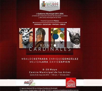 Por tratarse de 4 profesores, 4 disciplinas es que decidieron nombrarla como Puntos Cardinales, participando Wbaldo Estrada con trabajos de cerámica; Enrique Gonzales, esculturas; Melisa Lara, pintura y David Zapien, dibujo.