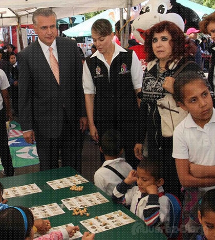 Durante la inauguración de la Feria Infantil 2014 de Arte y Ciencia, el Presidente Municipal, Enrique Serrano Escobar, felicitó a los pequeños que asistieron al evento por el próximo Día del Niño y reiteró su compromiso para que la niñez y juventud juarense cuenten con un ambiente saludable y libre.