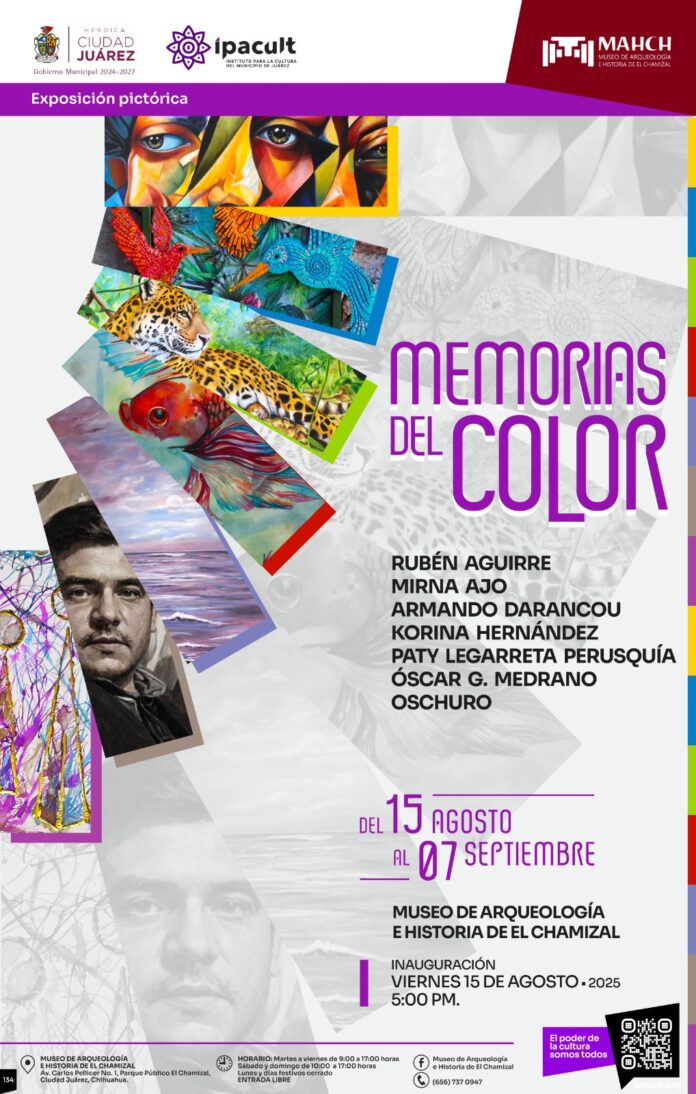 El arte juarense se vestirá de colores este viernes 15 de agosto con la inauguración de la exposición de pintura “Memorias del color”, que se llevará a cabo a las 5:00 de la tarde en el Museo de Arqueología e Historia de El Chamizal (MAHCH), bajo la organización del Instituto para la Cultura del Municipio de Juárez (IPACULT).