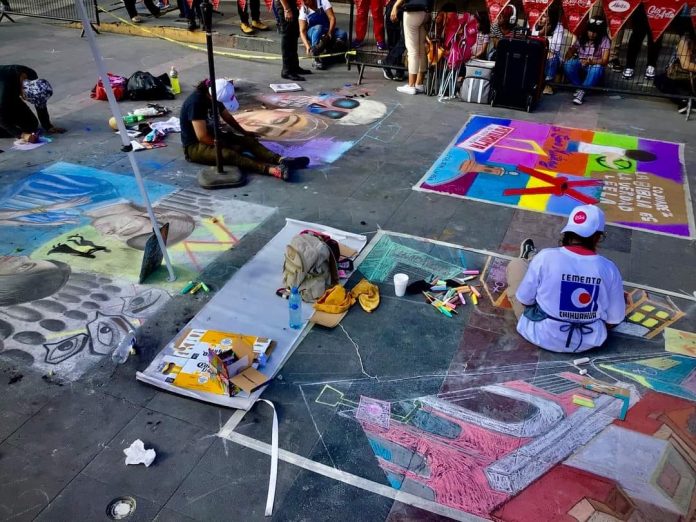 Las obras se crearán en espacios de 2×2 metros el día del evento y deberán coincidir con el boceto previamente registrado, donde los participantes únicamente podrán utilizar gis como material, y las obras que no cumplan con esta condición serán descalificadas.
