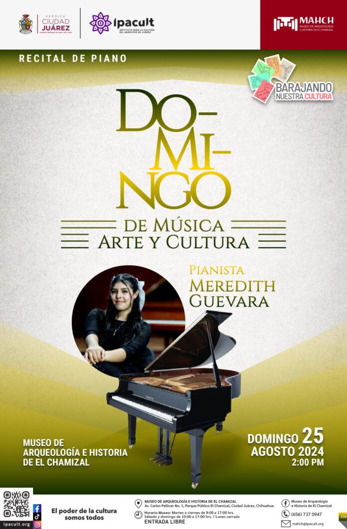 El Instituto para la Cultura del Municipio de Juárez (IPACULT) hace un llamado a la comunidad juarense para que asista a la segunda edición del evento “Do-Mi-ngo de música, arte y cultura”, que se llevará a cabo en el Museo de Arqueología e Historia de El Chamizal (MAHCH) este próximo domingo a las 2:00 de la tarde.