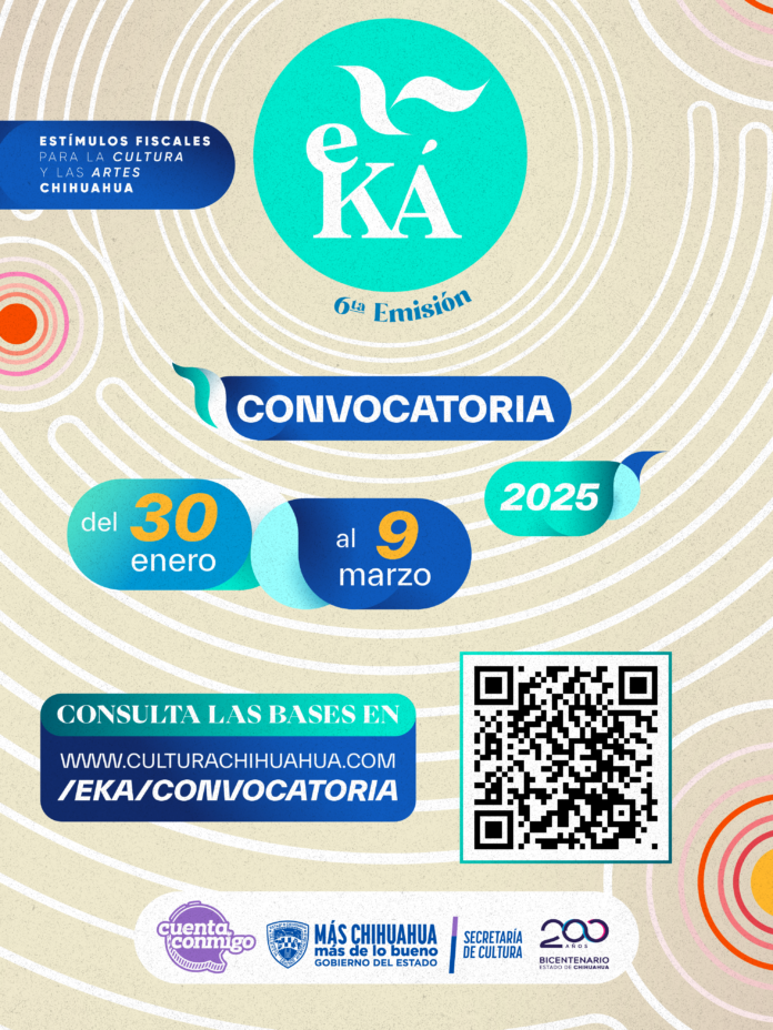 Chihuahua, Chih. (ADN/Staff) – La Secretaría de Cultura del Estado de Chihuahua ha lanzado la convocatoria para el Estímulo Fiscal para la Cultura y las Artes “Eká” 2025, una iniciativa que demuestra el compromiso del gobierno local por promover y fortalecer el desarrollo artístico y cultural en la región.