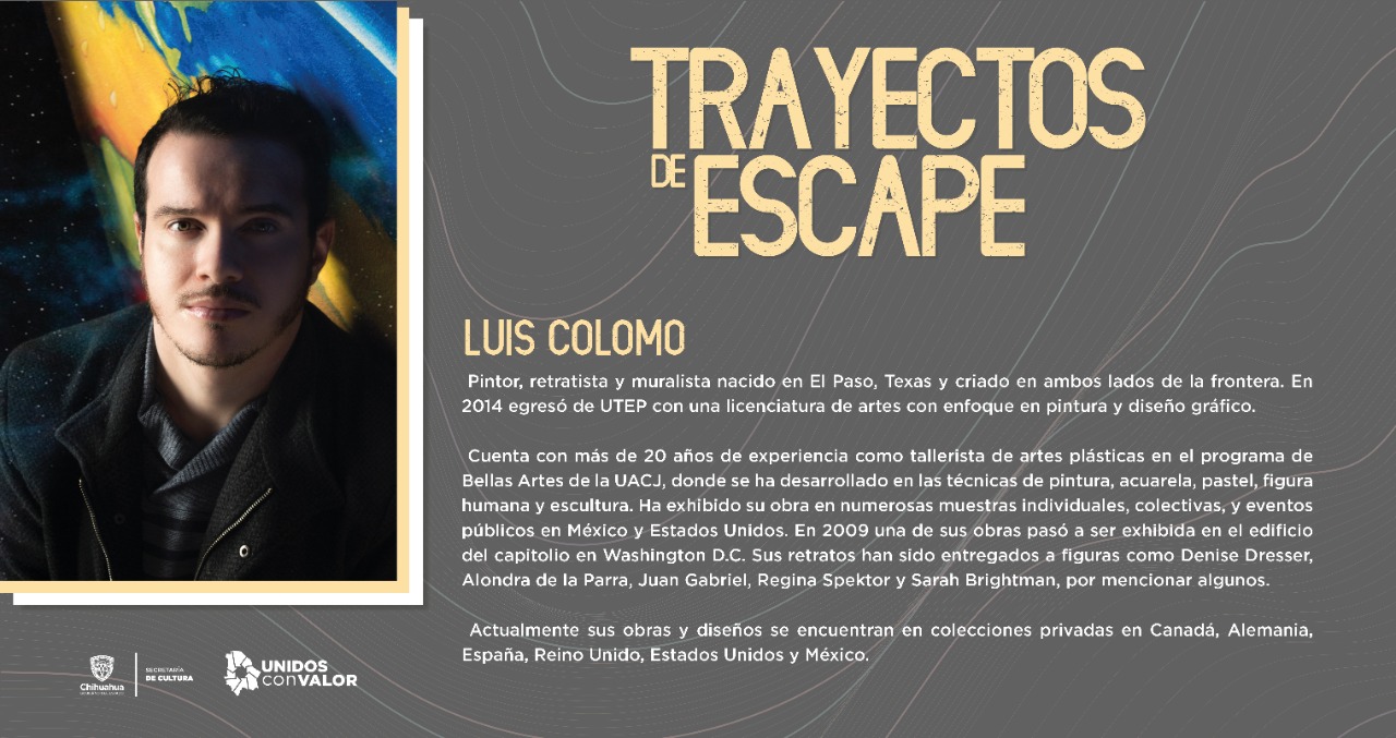 Ciudad Juárez, Chih. – Luis Colomo es pintor, retratista y muralista, y parte de su obra puede ser apreciada en la exposición colectiva Trayectos de escape en la sala de exposiciones en la planta alta del Centro Cultural Paso del Norte.
