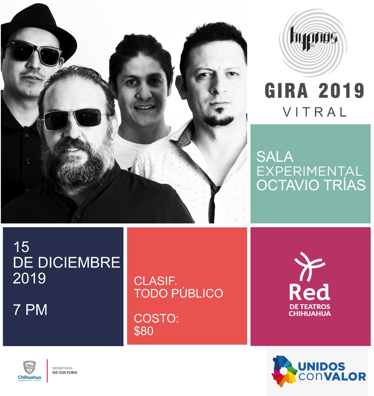 Una de las propuestas más innovadoras del Rock Mexicano, realiza su primera gira en teatros en el Estado de Chihuahua. Tras el éxito en el emblemático foro Cuartel del Arte de la Feria Nacional de San Marcos en el 2017 y ser un proyecto elegido en II Muestra de Creación Musical del Estado de Chihuahua en el 2018, la banda chihuahuense presenta su más reciente álbum llamado Vitral, grabado en Chihuahua, Aguascalientes y masterizado en Noruega por el músico y maestro Trond Engum.