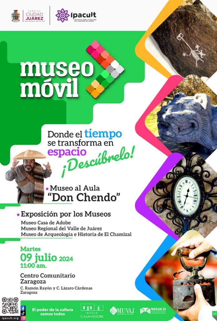 El Instituto para la Cultura del Municipio de Juárez, que dirige Myrna Judith Barajas Martínez, invita a la ciudadanía a disfrutar de la exhibición que presentarán el Museo de Arqueología e Historia de El Chamizal (MAHCH), el Museo Regional del Valle de Juárez (MUVAJ), la Sala de Arte Germán Valdés “Tin Tan” y el Museo Casa de Adobe, mañana martes 9 de julio en el Centro Comunitario Zaragoza.