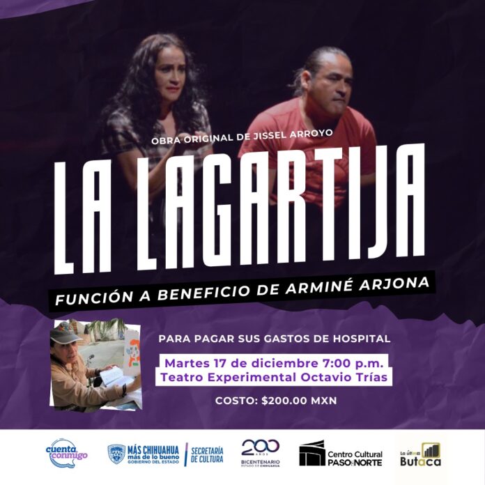 El próximo martes 17 de diciembre se llevará a cabo la obra de teatro original de Jissel Arroyo “La Lagartija”, a beneficio de la escritora juarense Arminé Arjona.