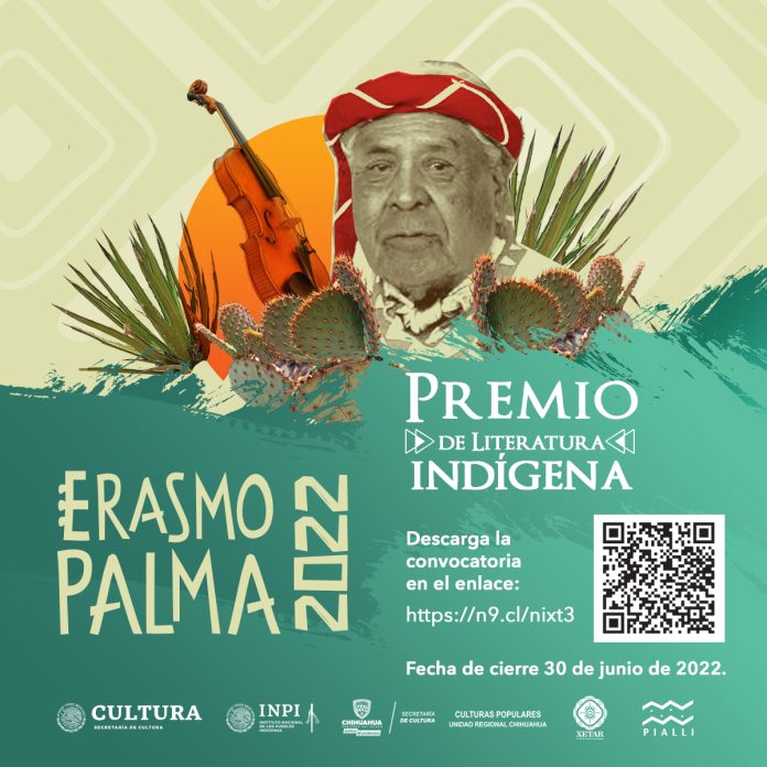Chihuahua, Chih .- La Secretaría de Cultura del Estado de Chihuahua, a través del Departamento de Culturas Étnicas y Diversidad, invita a las y los ciudadanos a participar en la convocatoria Premio de Literatura Indígena Erasmo Palma 2022, cuya bolsa de premiación establece un monto de $30,000 (treinta mil pesos), tanto para la mejor obra escrita, como para obra oral. Ambas con su respectiva publicación en físico.