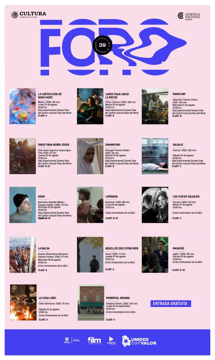 Ciudad Juárez, Chih. – La Secretaría de Cultura, el Departamento de Cinematografía y Comisión Fílmica (Film Chihuahua) y la Subsecretaría de Cultura Zona Norte, invita a disfrutar las mejores películas internacionales en el 39 Foro de Cine de la Cineteca Nacional.
