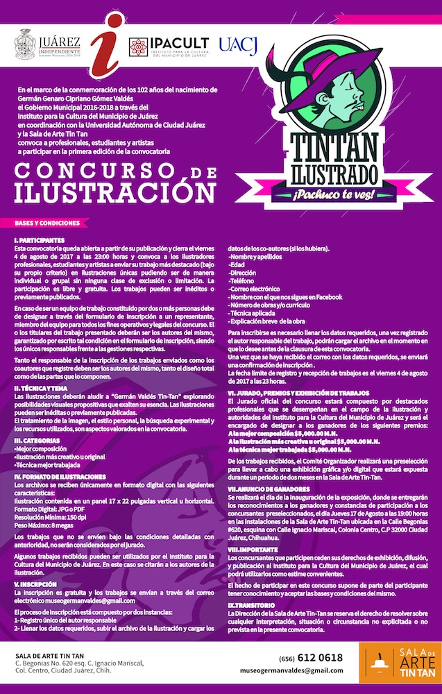 Ciudad Juárez, Chih. – El Instituto para la Cultura del Municipio invita a los profesionales, estudiantes y artistas a participar en la primera edición del Concurso “Tin Tan Ilustrado, ¡Pachuco te ves!”.