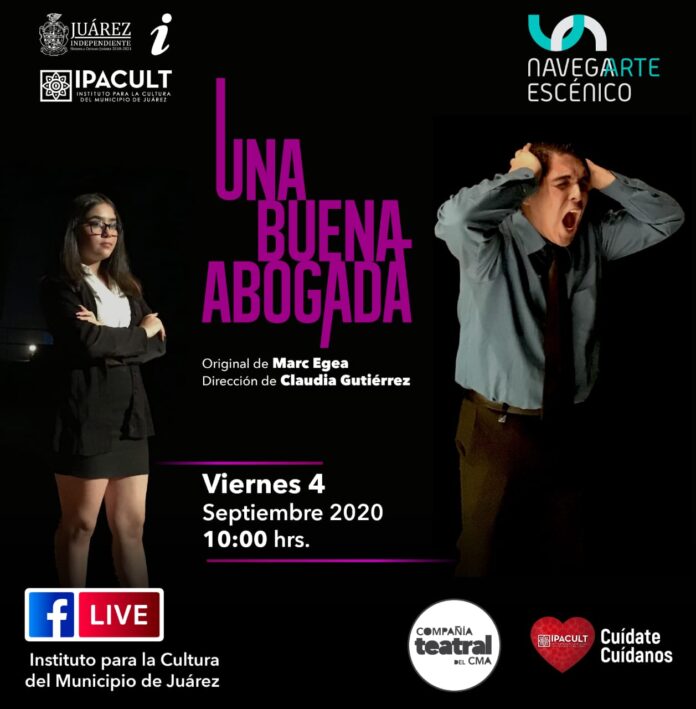 Ciudad Juárez, Chih. – La obra “Una buena abogada” será transmitida este viernes en el marco del programa de teatro online que el Instituto Para la Cultura del Municipio de Juárez (IPACULT) transmite en vivo todos los viernes a las 10:00 de la mañana a través de Facebook Live.