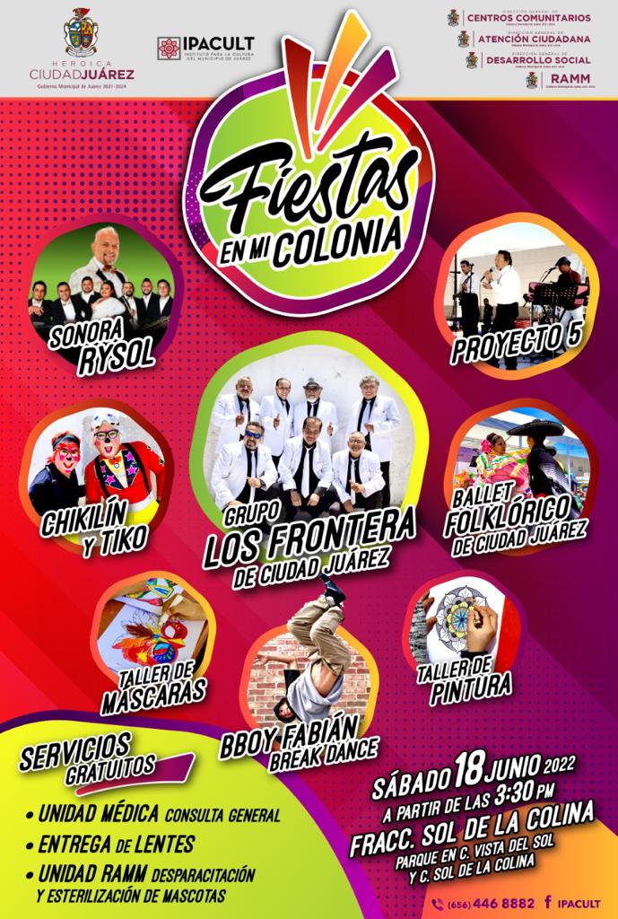 Fiestas en mi Colonia es un programa pensado para acercar las distintas disciplinas del arte a las áreas que se encuentran más alejadas de este tipo de actividades artísticas y culturales.