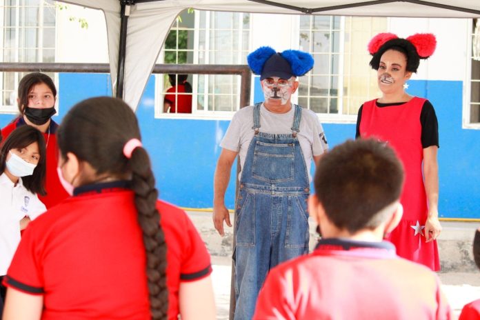 La escuela Benito Juárez cuenta con 600 alumnos, mismos que disfrutaron de las actividades culturales por parte de Marionetas Shuto, el cantante de hip hop Diomer, cuenta cuentos y los payasitos Chikilin y Tiko.