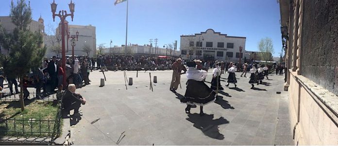 Ciudad Juárez, Chih. – Como parte de las propuestas artísticas que el Instituto Para la Cultura del Municipio de Juárez (IPACULT) ofrece a la comunidad fronteriza en el marco del programa “Arte en las calles”, el Ballet Folklórico de Ciudad Juárez se presentó en el exterior del Centro Municipal de las Artes (CMA) con el beneplácito de los paseantes del centro histórico que en una cantidad aproximada de 400 personas se reunieron a disfrutar del espectáculo.