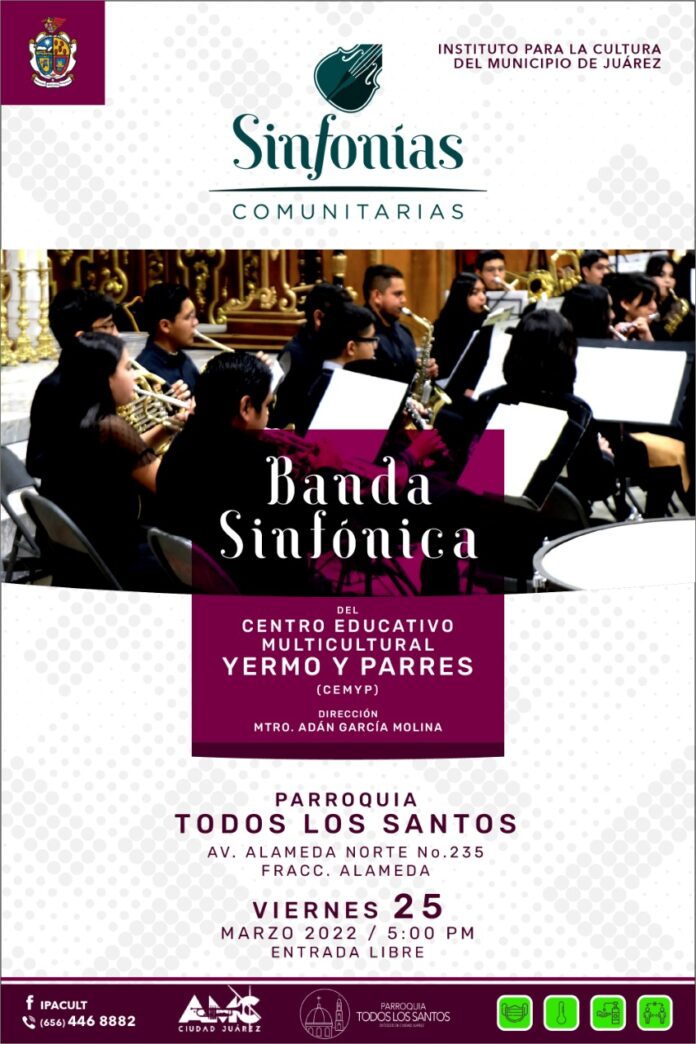 Ciudad Juárez, Chih .- El próximo viernes 25 se llevará a cabo el segundo concierto de Sinfonías Comunitarias organizado por el Instituto para la Cultura del Municipio de Juárez (IPACULT), evento que tendrá como sede la Parroquia Todos los Santos a partir de las 5:00 de la tarde.