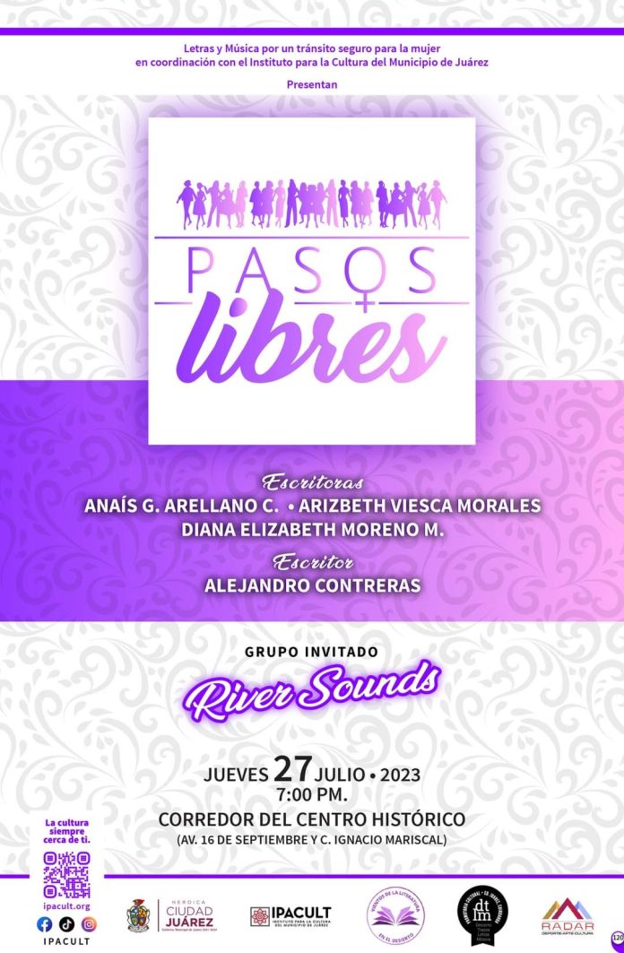 Además, dentro del tema “Pasos Libres”, varios escritores estarán compartiendo su obra literaria, como Arizbeth Viesca Morales, Diana Elizabeth Moreno, Anahí Guadalupe Arellano y Alejandro Contreras, quienes estarán acompañados por el grupo musical River Sounds, para dar fondo a su narrativa.