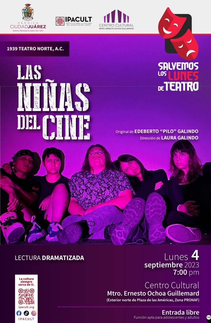 Como cada primer lunes del mes, este próximo 4 de septiembre a las 7:00 de la tarde, dentro del programa “Salvemos los lunes de teatro”, sube a escena la pieza teatral “Las niñas del cine”, escrita por el dramaturgo Edeberto “Pilo” Galindo, autor de más de 60 obras y bajo la dirección de Laura Galindo.