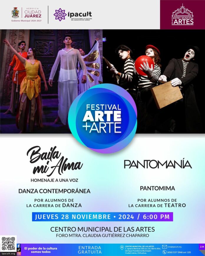 El Centro Municipal de las Artes (CMA) se convertirá en el escenario principal del talento joven juarense con las presentaciones de “Baila mi alma” y “Pantomanía”, eventos organizados como parte del Festival Arte+Arte.