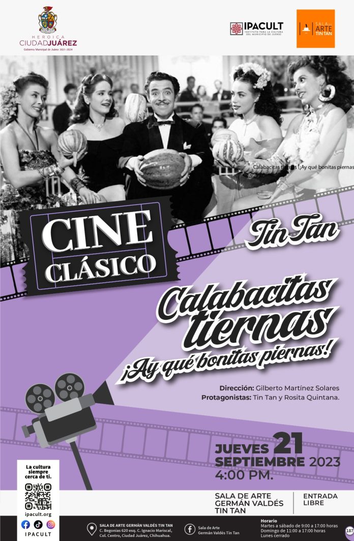 El IPACULT, a través de la Sala de Arte Germán Valdés “Tin Tan”, invita la comunidad para que asista a disfrutar de esta película en compañía de la familia, los amigos o en solitario y pasar así, una tarde con las ocurrencias del cómico juarense por adopción.