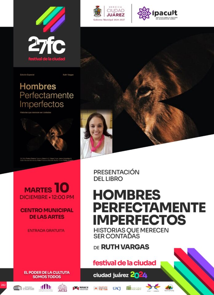 En el marco de la edición número 27 del Festival de la Ciudad, el Instituto para la Cultura del Municipio de Juárez (IPACULT) extiende una invitación al público para la presentación del libro “Hombres perfectamente imperfectos: historias que merecen ser contadas”, evento que tendrá lugar el martes 10 de diciembre a las 12:00 del mediodía en el Centro Municipal de las Artes (CMA).