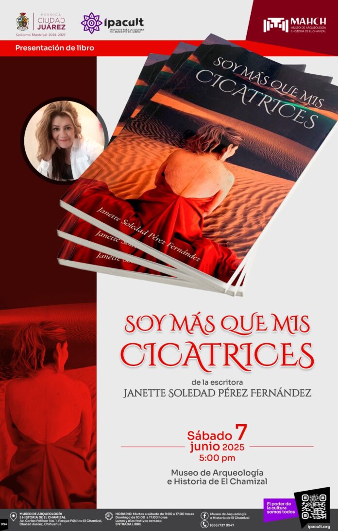 El Instituto para la Cultura del Municipio de Juárez (IPACULT) extiende una cordial invitación a la ciudadanía a la presentación del libro “Soy más que mis cicatrices”, escrito por Janette Soledad Pérez Fernández.