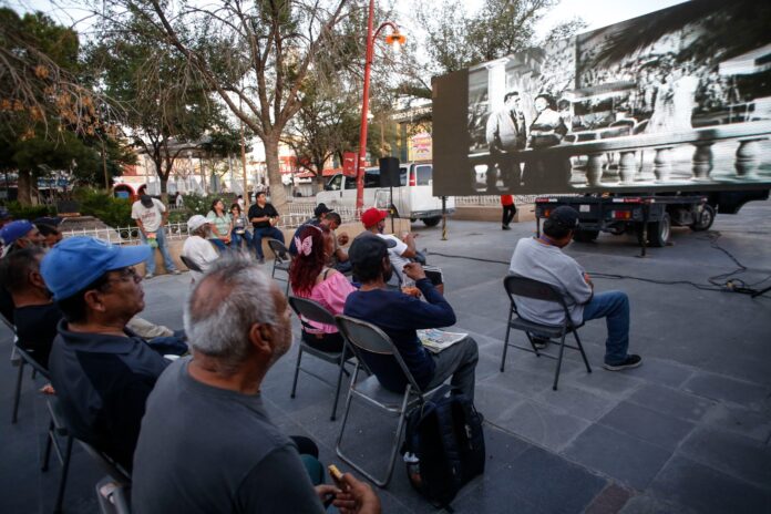 Ciudad Juárez, Chih .- La Plaza de Armas del Centro Histórico se transformó en un cine al aire libre, donde familias y transeúntes se congregaron para disfrutar de esta obra protagonizada por el icónico Pedro Infante.