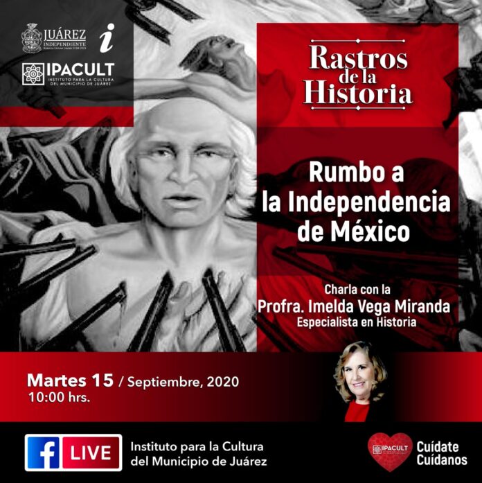 Ciudad Juárez, Chih. – En el marco de los festejos de las fiestas patrias este martes 15 de septiembre el programa “Rastros de la Historia”, que se transmite en vivo semanalmente vía internet bajo el auspicio del Instituto Para la Cultura del Municipio de Juárez (IPACULT), tocará el tema de la Independencia de México, desde sus primeros antecedentes hasta su consumación en 1821.
