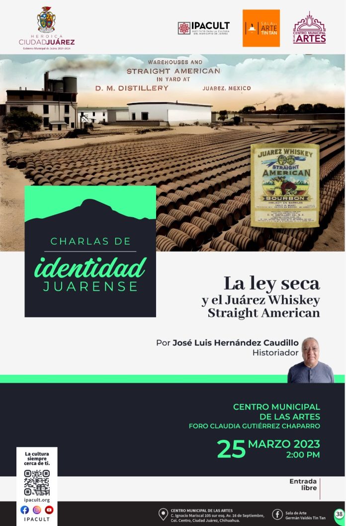 Ciudad Juárez, Chih .- El tema inicial será La ley seca y el Juárez Whiskey Straight American, con el ponente José Luis Hernández Caudillo, integrante del grupo de promotores de los historia El Juárez de Ayer.