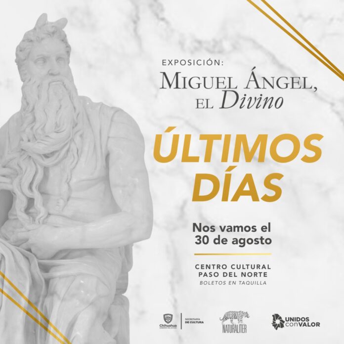 Ciudad Juárez, Chih .- La exposición “Miguel Ángel, el divino” se despide de la frontera este lunes 30 de agosto, es por ello que se invita a la comunidad fronteriza a no desaprovechar la oportunidad de disfrutar de las reproducciones fidedignas de las piezas del artista renacentista en Centro Cultural Paso del Norte (CCPN).