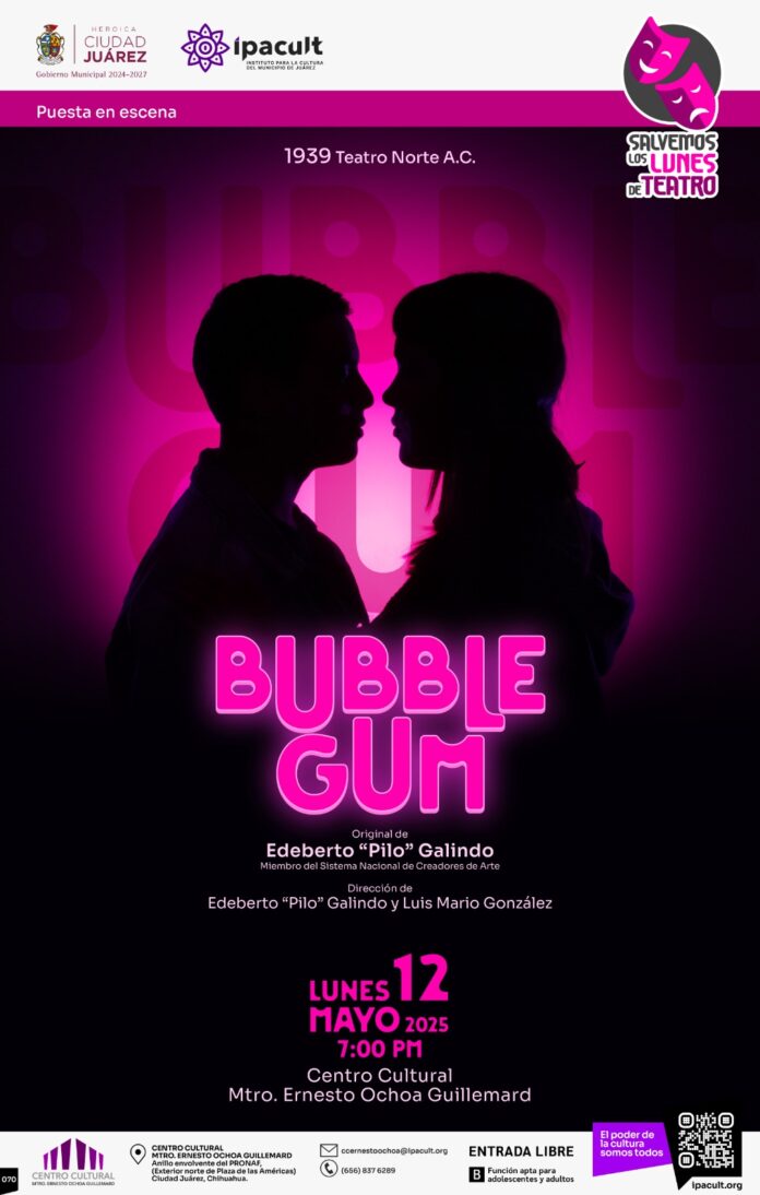 El Instituto para la Cultura del Municipio de Juárez (IPACULT) continúa impulsando el arte escénico con su programa “Salvemos los lunes de teatro”, y en esta ocasión presentará de forma gratuita la obra “Bubble Gump” el próximo lunes 12 de mayo a las 7:00 de la tarde en el Centro Cultural Ernesto Ochoa Guillemard.