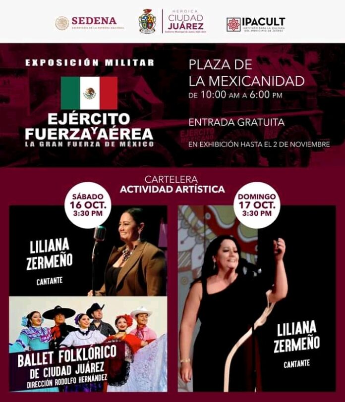 Ciudad a Juárez, Chih .- Tras las exitosas presentaciones el pasado viernes de “Don Chendo” y la Compañía de Danza “México Fiesta y Tradición” del Centro Municipal de las Artes (CMA), hoy continúa la actividad cultural en la exposición militar “La Gran Fuerza de México”.