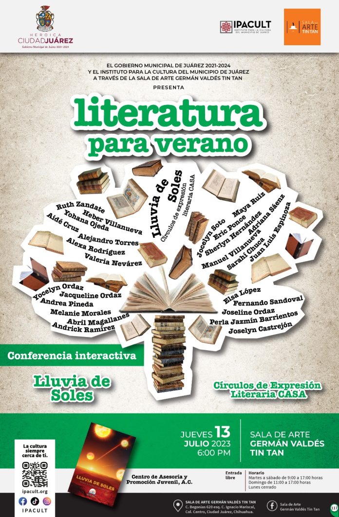 Ciudad Juárez, Chih .- Lluvia de Soles estará en la Sala de Arte Germán Valdés “Tin Tan”, ubicada en la calle Begonias número 620, en la colonia Bellavista.