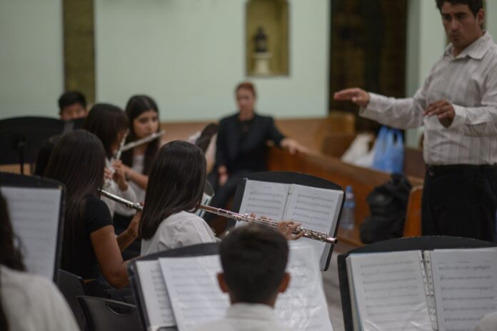 La Parroquia Santa María de losÁngeles se llenó de melodías la tarde de ayer, durante el concierto ofrecido por la Sinfónica Agrupación Reforma, conformada por jóvenes músicos de entre 7 y 17 años deleitaron al público con una variada selección musical, bajo la batuta del director Marcos Liván Rodríguez.