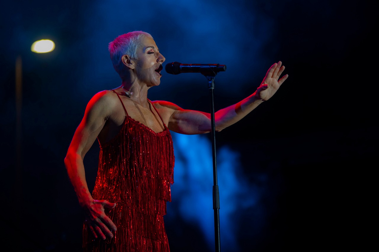 Delicias, Chih. – Con la asistencia de más de 7 mil personas, la explanada del Museo del Desierto Chihuahuense de Delicias vibró durante dos horas, en el concierto que ofreció Ana Torroja como parte de la programación artística que trae Gobierno del Estado a través de la XV edición del Festival Internacional Chihuahua.