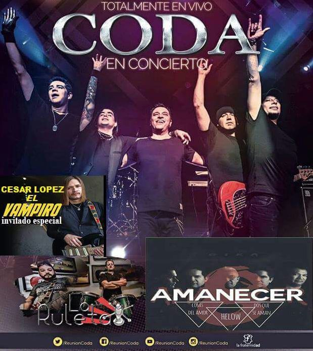 La Ruleta es una banda con un sonido bien logrado, robusto, y que logra acuñarse al nivel de grandes con temas como “Envenenado” o “Lágrimas Frías” mismos que podrás escuchar este viernes 17 de febrero de 2017 en Tequila Discoteque, totalmente en vivo junto “El Vampiro” como invitado especial, la legendaria banda CODA y el grupo Amanecer.