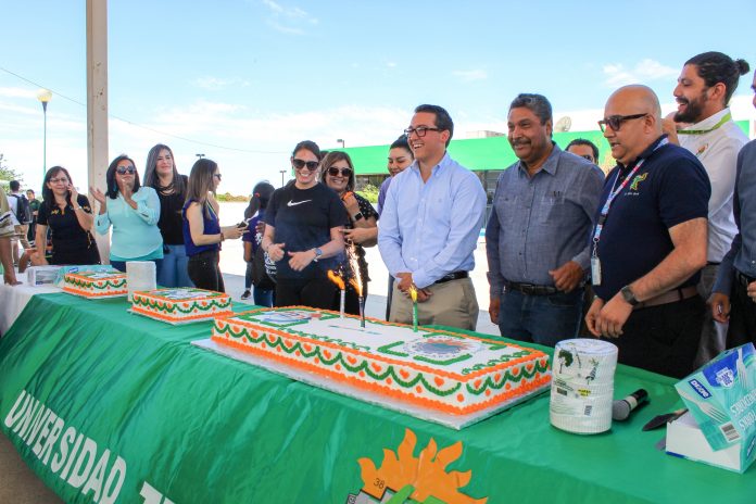 Además, “En el tema de los servicios tecnológicos, de la internacionalización, de la movilidad internacional, del aprendizaje de un segundo idioma y sobre todo más competencia y capacidades para que los alumnos salgan mejor preparados”, agregó el rector de la UTCJ. Por la tarde se llevó a cabo otro corte de pastel, para los estudiantes y personal del turno vespertino.
