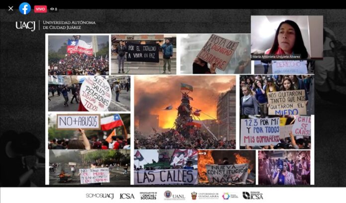 La doctora Urquieta habló sobre la situación que se vive en Chile y aseguró que el modelo evidencia importantes desgastes e insuficiencias. Cuestionó qué transiciones se tienen que hacer para construir una nueva forma de relación entre el Estado, la ciudadanía y el mercado.