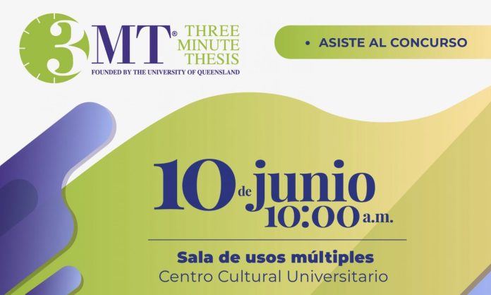 Ciudad Juárez, Chih. (UACJ) – Tres minutos será el tiempo que tendrán los participantes del concurso institucional 3MT (Three Minutes Thesis) para explicar en un lenguaje coloquial, y ante una audiencia especializada, una investigación de tesis a nivel maestría o doctorado.