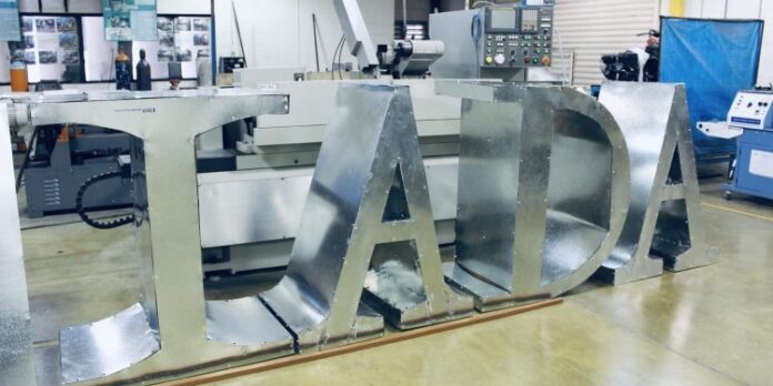 Alumnos diseñan las siglas del IIT-IADA en lámina galvanizada, como parte del proyecto de megaplaza en este campus