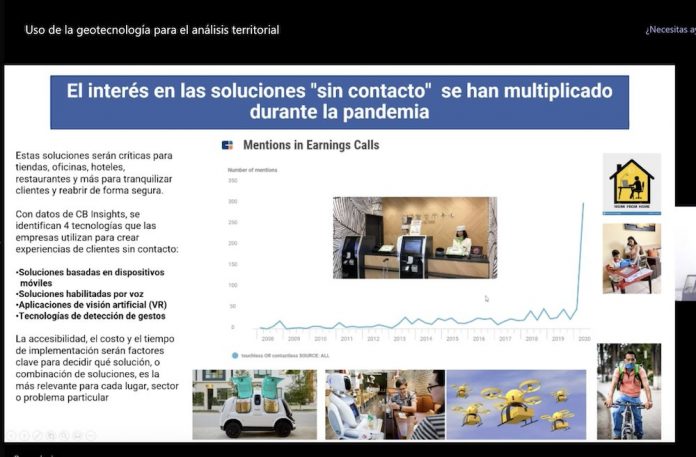 Indicó que la pandemia de COVID-19 trajo consigo una serie de cuestionamientos desde la perspectiva territorial: ¿Cómo nos cuestiona a los investigadores, docentes y estudiantes del territorio y del análisis espacial, en un entorno de largo plazo pandémico?, y ¿Qué recursos resultan más potentes o adecuados para la enseñanza en este contexto?