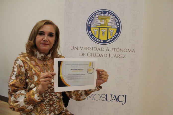 Ciudad Juárez, Chih. (UACJ) – Por su sobresaliente trayectoria y compromiso con el país como par evaluador en los procesos de acreditación de la educación superior en México, el Consejo para la Acreditación de la Educación Superior (COPAES) distinguió el trabajo de la maestra María Esther Mears Delgado, directora general de Planeación y Desarrollo Institucional de la UACJ.