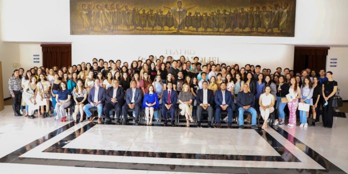 Ciudad Juárez, Chih. (UACJ) –Autoridades universitarias presidieron el Bagaje Cultural, que esta Universidad realizó para despedir y desearles buen viaje a los 139 estudiantes que realizarán estancias académicas y de investigación en el periodo agosto-diciembre de 2022.