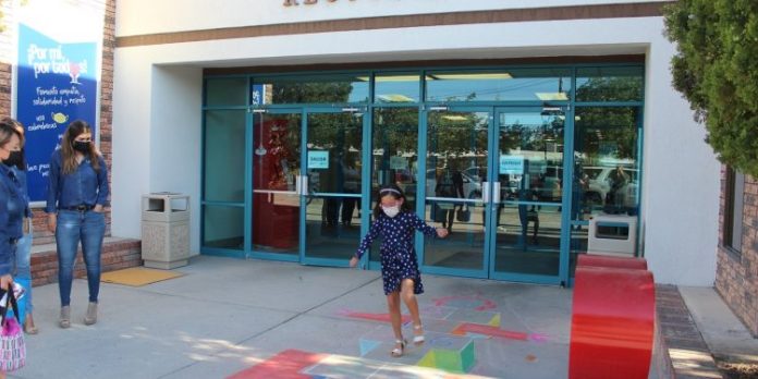 Ciudad Juárez, Chih. (UACJ) – Porque todos llevamos un niño dentro, en el exterior del edificio de rectoría de la Universidad se dibujó el legendario juego «mamaleche» (también conocido como avioncito), como parte de los festejos que realiza la UACJ para celebrar el Día del Niño.